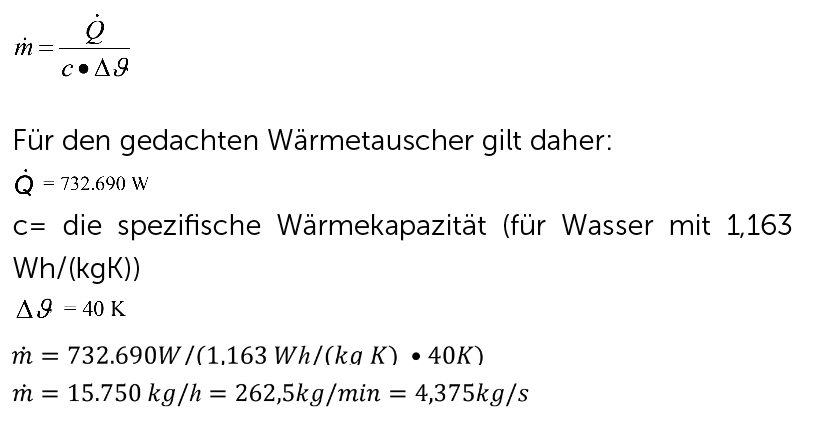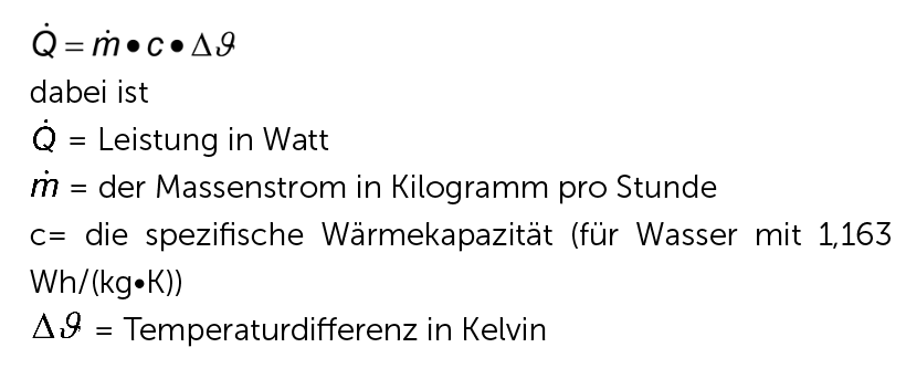 Die Formel umgestellt zur Berechnung des Massenstroms auf der Heizungsseite: