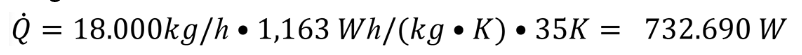 Es sind tatsächlich 733 kW Leistung notwendig um diesen Wassermassenstrom zu erwärmen.