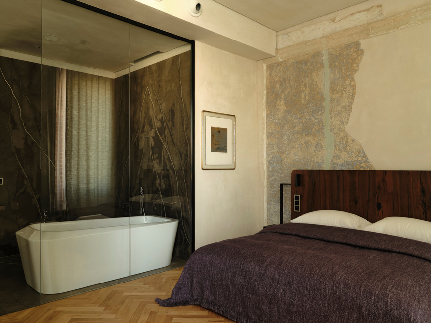Alle Zimmer und Apartments sind individuelle Designs. Sie zeichnen sich durch strukturierte Decken, Fresken und originale Details aus dem 19. Jahrhundert aus. Die Hauptmaterialien sind massive Eiche und Walnuss, aber auch Naturstein, Glas und patiniertes Messing kommen zum Einsatz. Zudem gibt es maßgewebte Vorhänge und Tagesdecken. Darüber hinaus sollen ein Wellness- und Spa-Bereich mit Schwimmbad den Gästen einen luxuriösen Aufenthalt bieten.