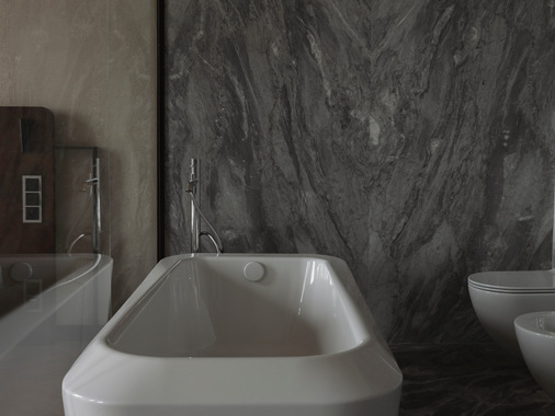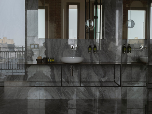 Die emaillierten Produkte passen perfekt zur Marmorausführung der neuen Badezimmer des Grand Hotels. Sie sind mit den Waschtisch-Schalen Miena und Badewannen des Modells Meisterstück Emerso ausgestattet.