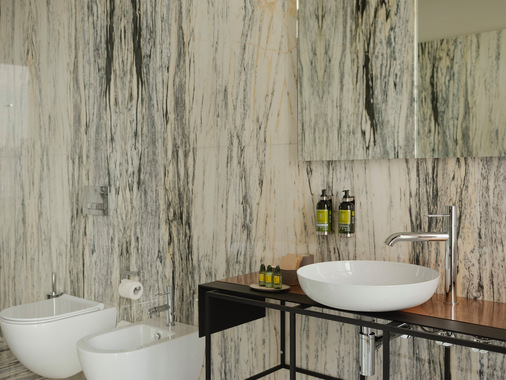 Die gesamte Badgestaltung integriert sich harmonisch in das Gesamtkonzept des Grand Hotels. Im Zuge der Renovierung wurde mit außergewöhnlicher Liebe zum Detail darauf geachtet, diesem Ort seinen Ruf als Synonym für Prestige und Eleganz sowie als architektonisches Juwel zurückzugeben, als das es seit seiner Gründung im Jahr 1888 galt.