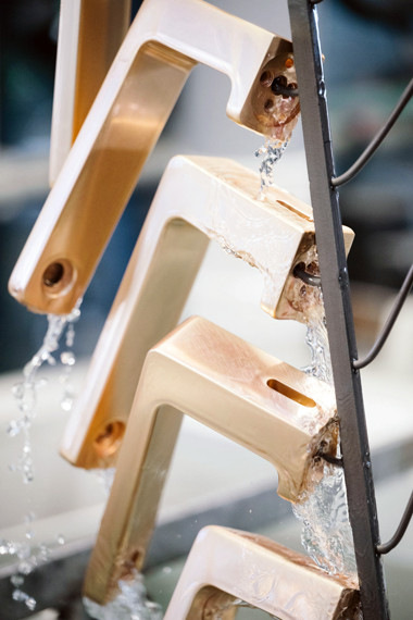 Vom rohen Körper zum Edelmetall. In der Galvanik erfolgt die Oberflächenveredelung von Hand. Dabei werden hochwertige, metallische Oberflächen aufgebracht.