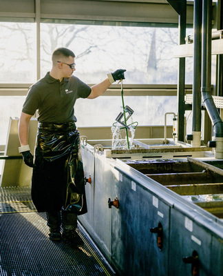 Vom rohen Körper zum Edelmetall: In der Galvanik wird der Armaturenkörper neu veredelt. Die entstehende Oberfläche zeichnet sich durch einzigartige Farbtiefe und Brillanz aus.