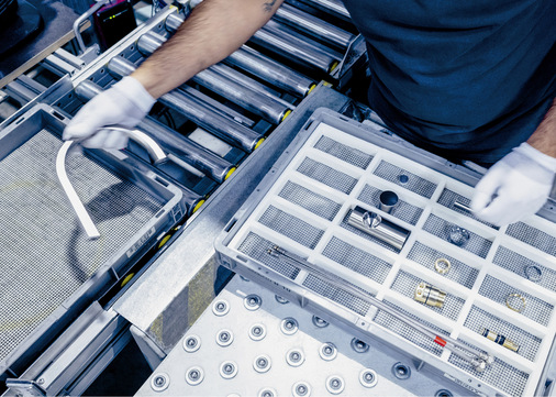 Bei der Kommissionierung wird der Armaturenkörper um die benötigten neuen Bauteile ergänzt. So werden beispielsweise Mischerkartuschen, Dichtungen und Strahlregler hinzugefügt.