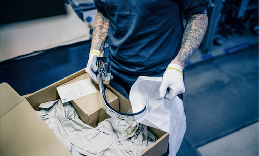 Während des letzten Prozess-Schrittes, der Montage, wird die Armatur vollständig zusammengebaut. Anschließend durchläuft sie eine Dichtigkeits- und eine abschließende Qualitätsprüfung. Zuletzt wird das Produkt gemeinsam mit dem Dornbracht ReCrafted-Zertifikat in einer ökologischen Versandkartonage verpackt.