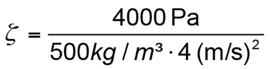 Dieser Bogen kann nun verpackt werden und geht in Serie auf den SHK-Markt. Klar ist, dass dieser Bogen nicht ins Regal kommt für Krümmungen, die mit 2 m/s durchströmt werden und dabei 4000 Pa Druckverlust hervorrufen. Jede halbwegs vernünftige Geschwindigkeit in einem Rohrnetz kommt für diesen Bogen in Frage. Wie groß ist aber der Druckabfall im Bogen, wenn dieser schneller oder langsamer durchströmt wird? Dazu wird die gleiche Formel kurzerhand umgestellt und ergibt dann eine Prognose für den Druckverlust bei anderen Strömungsgeschwindigkeiten. Die Formel lautet dann: