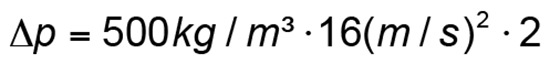 – Die Druckdifferenz ist Δp (sprich Delta P) und beträgt 4000 Pascal (Pa).
