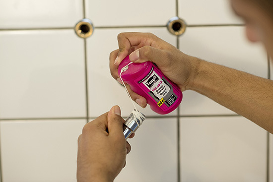 Zum Schluss nur noch die Gewindeteile verschrauben, die Verbindung mit einer Rohrzange festziehen und gegebenenfalls nachjustieren. Tangit Uni-Lock macht das Nachjustieren übrigens besonders einfach, da sich der Faden problemlos bis zu 45 Grad zurückdrehen lässt.
