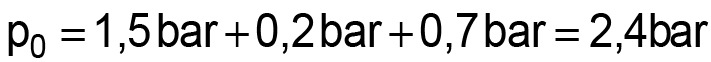 sowie aus p0 wobei sich dieser Wert aus statischem Druck plus Pumpendruck plus Verdampfungsdruck ergibt. Im Beispiel sei dies