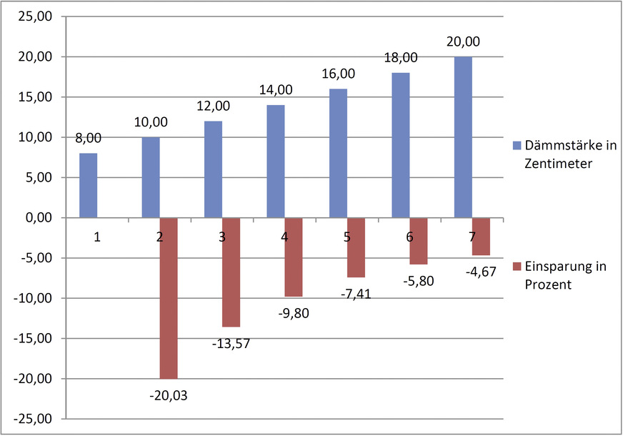 Eine Erhöhung der Dämmstärke bringt Einsparung in der Größenordnung
