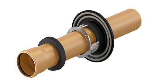 Wird eine Hauseinführung in einem Bestandsgebäude saniert, ist dies in den meisten Fällen nur die „halbe Miete“, schließlich gibt es ja auch noch die Entsorgungsleitungen. Sollen auch diese erneuert werden, greift man am besten auf die Quadro-Secura® Quick/O zurück. Sie lässt sich ebenso einfach verbauen, wie die anderen Varianten, ist allerdings für die Aufnahme eines Abwasserrohres konzipiert.