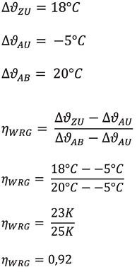 Der Wärmerückgewinnungsgrad beträgt für diese Anlage unter den genannten Bedingungen 92 %.