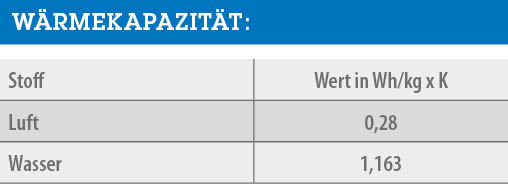 Die nackten Fakten erscheinen nicht sonderlich aufregend oder spektakulär. Ein Kubikmeter Luft wiegt unter Normbedingungen, also bei 0 °C und 1013 mbar Luftdruck, gerade mal 1,293 kg. Pro Kilogramm dieser Luft müssen rund 0,28 Wattstunden an Energie eingesetzt werden, will man dieses Fluid um ein Kelvin von z. B. 0 °C auf 1 °C erwärmen. Diese Wärmekapazität entspricht dann rund 0,34 Wattstunden bezogen auf einen Kubikmeter bei gleicher Temperaturdifferenz von einem Kelvin.