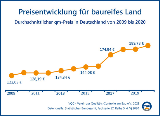 Bauland war in Deutschland noch nie so teuer wie im Jahr 2020. Wie das Statistische Bundesamt (Destatis) mitteilt, kostete ein Quadratmeter baureifes Land durchschnittlich 199 Euro. Im Jahr 2010 hatte der Quadratmeterpreis noch bei 130 Euro gelegen. Je nach Bundesland und Gemeindegröße zeigt sich...