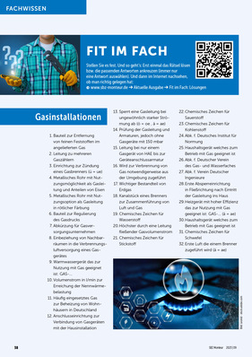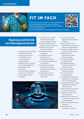 Stellen Sie es fest. Und so geht’s: Erst einmal das Rätsel lösen bzw. die passenden Antworten ankreuzen (immer nur eine Antwort auswählen). Und dann im Internet nachsehen, ob man richtig gelegen hat: www.sbz-monteur.de ➔ Aktuelle Ausgabe ➔ Fit im Fach: Lösungen
