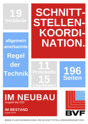 Im Anschluss an die Aktualisierung der Schnittstellenkoordination für Flächenheizungen und Flächenkühlungen für bestehende Gebäude haben die Experten des BVF und der beteiligten Verbände mit Hochdruck an der Aktualisierung des Regelwerkes für Neubauten gearbeitet. Nun ist es geschafft!