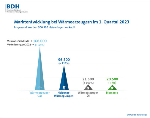 Deutschen Heizungsindustrie (BDH) mitteilt, wuchsen die Verkaufszahlen im Wärmeerzeuger - Markt im ersten Quartal 2023 um insgesamt 38 Prozent auf 306.500 verkaufte Anlagen. Besonders stark ist der Boom bei den Verkäufen von Wärmepumpen, die im Vergleich zum...