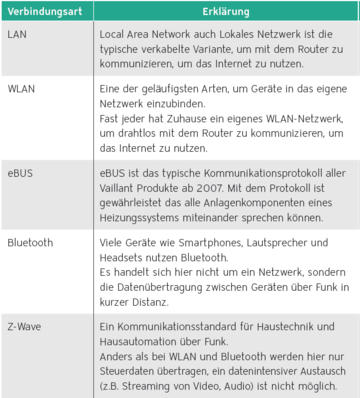 Nein, ein intelligentes Zuhause kann jeder haben, im Altbau, im Neubau, in einer Wohnung - es sind allerdings, je nach gewünschtem Umfang der Connectivity, bestimmte Voraussetzungen zu erfüllen und damit auch die Technik bzw. Verbindungsart (siehe folgende Tabelle) vorgegeben.