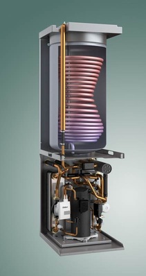 Die Warmwasserwärmepumpe kann ein Einfamilienhaus von einer zentralen Stelle mit Warmwasser versorgen. Der Aufstellungsraum befindet sich vorrangig dort, wo Wärme anfällt. Das