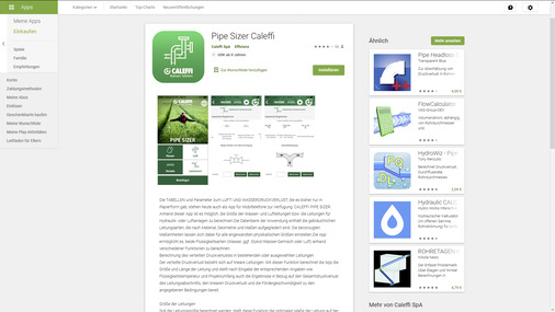 ... zur Rohrnetzberechnung, Stichwort: pipe sizer