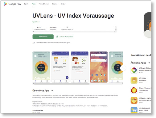 ... für viele Orte wählbar. Stichwort: Sonne UV