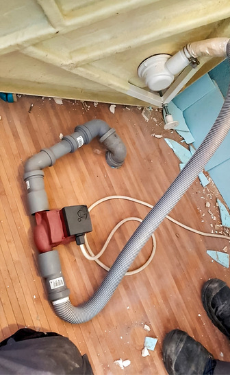 Dieser Bastler hatte sich auf seiner Akademie der Tüftler den ultimativen Ablaufbeschleuniger ausgedacht und regelkonform unter seine Dusche montiert. Kann man so machen, aber dann ist es halt Kacke. Später mussten dann doch die Profis ran.