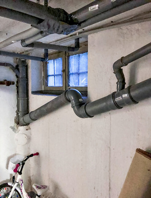 Wenn die alte Installation bestimmte Rohrverläufe vorgibt, die neue UP-Armatur aber anders positionierte Anschlüsse hat, dann muss getrickst werden. Das führt dann auch schon mal zu solchen verwirrenden Rohrverläufen.