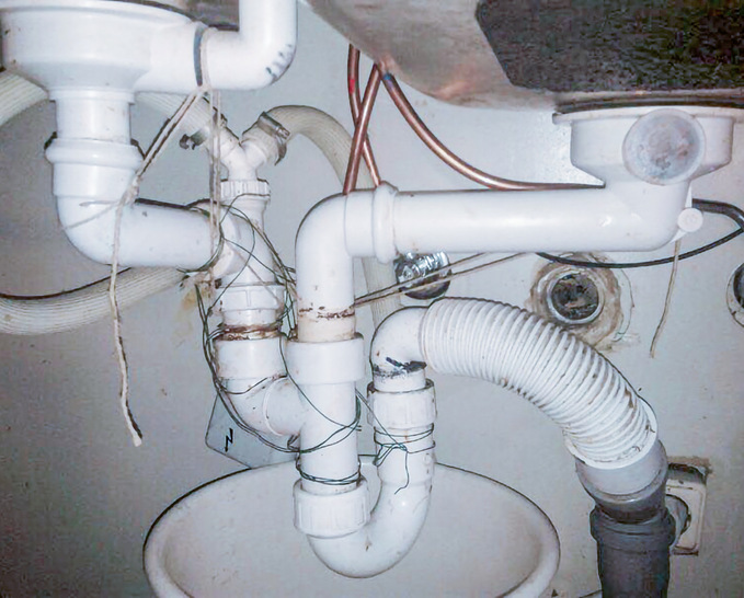 Da wurde zusammengetüddelt, geschraubt, verknotet, gespannt und gelockert, nachgedichtet und verklebt. Und damit dann auch einer sein fachliches Auge drauf werfen kann, wird der Installateur gerufen.