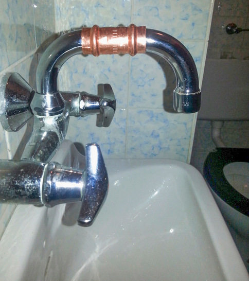 Bevor jetzt jemand meckert: Wer weiß denn schon, was der Kunde bestellt hatte? Vielleicht genau diese einzigartige Armatur mit dem kurzen handwerklich optimierten Auslaufmodell.