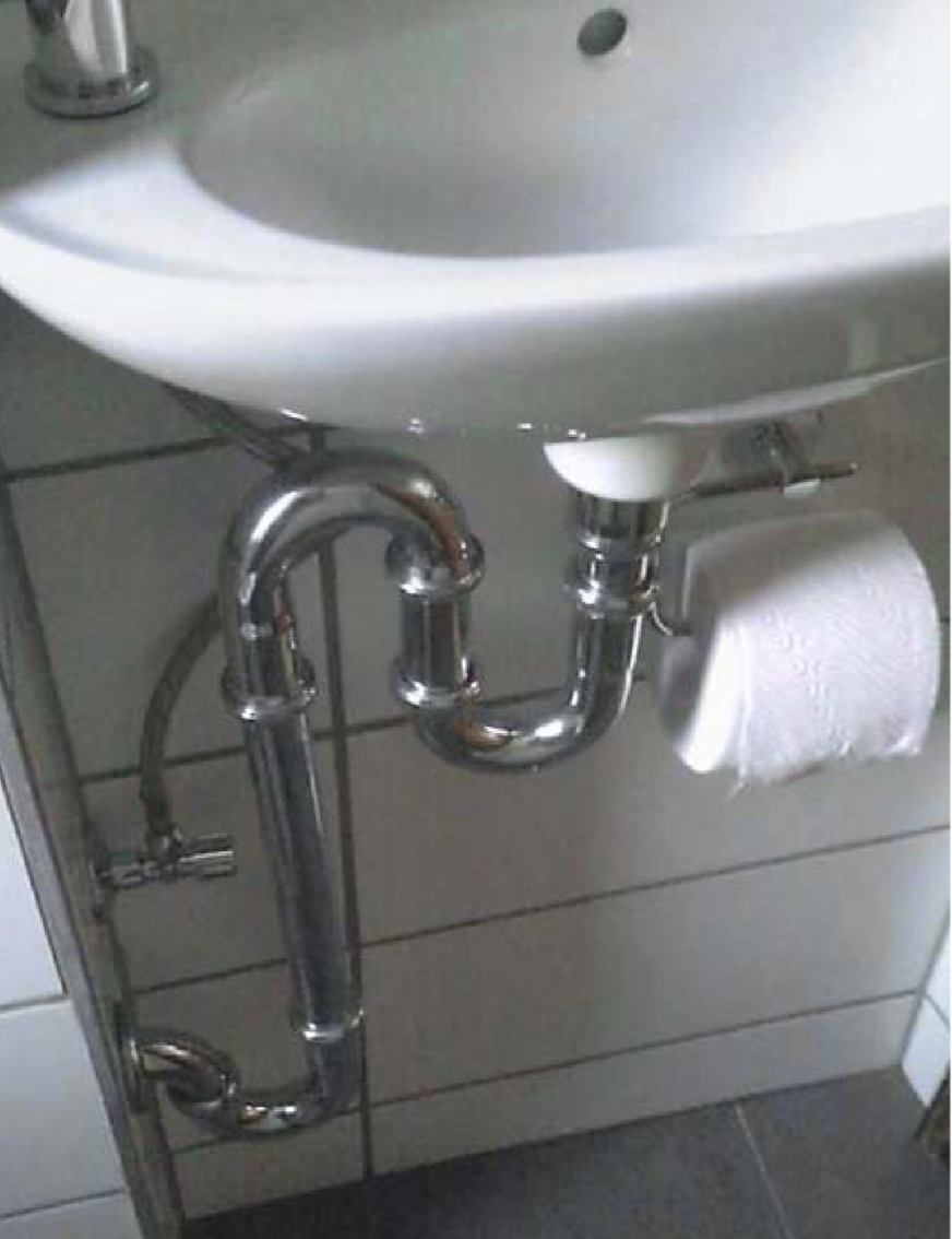 Hin und wieder reicht es offenbar nicht, das Sperrwasser eines Siphons nur einmal gegen den Kanalmuff zu stemmen. In Serie hingegen erhöht sich anscheinend die Wahrscheinlichkeit der Geruchsbeseitigung und/oder die Moleküle verirren zusätzlich auf den Biegungen.