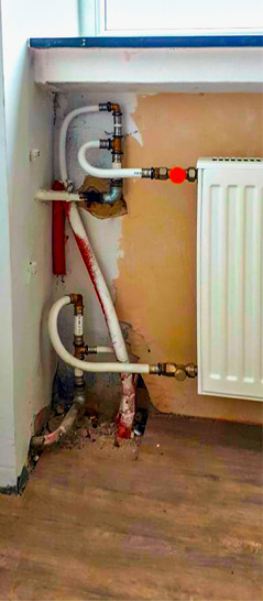 Wenn fachfremde Handwerker eine Heizung basteln, kommt nicht unbedingt etwas Sinnvolles heraus. Hier hatte ein Dachdecker Hand angelegt. Dafür ist es aber echt gut geworden.