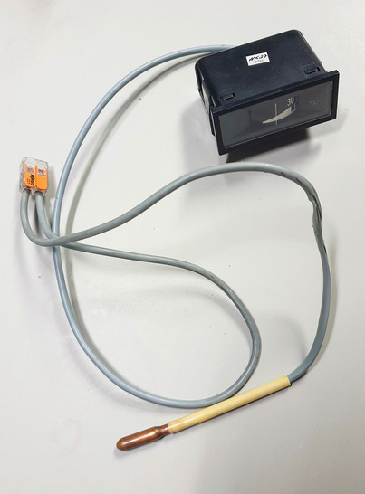 Das Thermometer mit Kapillarrohr hatte offensichtlich den Dienst quittiert, nachdem es in die Kesseltür eingeklemmt wurde. Leider konnte trotz Entfernens der schadhaften Stelle die Funktion mit einer Wagoklemme nicht hergestellt werden.