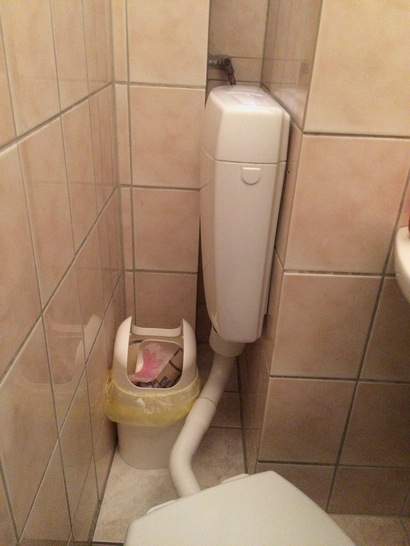 Für extrem schmale Nischen, in denen trotzdem noch mit schlichter Eleganz ein Spülkasten untergebracht werden soll, hat die Sanitär-Industrie endlich diese Konstruktion auf den Markt gebracht. Gut, dass SHK-Profis endlich solche hübschen Installationen anbieten können. Allerdings ist diese Anordnung nix für Klaustrophobiker oder Monks.