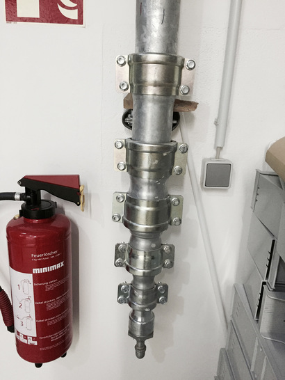 Die Aneinanderreihung von Reduzierungen gipfelt und endet in einer Außenzapfstelle, die nicht im Bild ist. Dort kann man dann Wasser zapfen. Dieses Wasser wird allerdings keine Trinkwasserqualität mehr haben. So etwas sieht man selten und, wir hoffen das bleibt eine Ausnahme.
