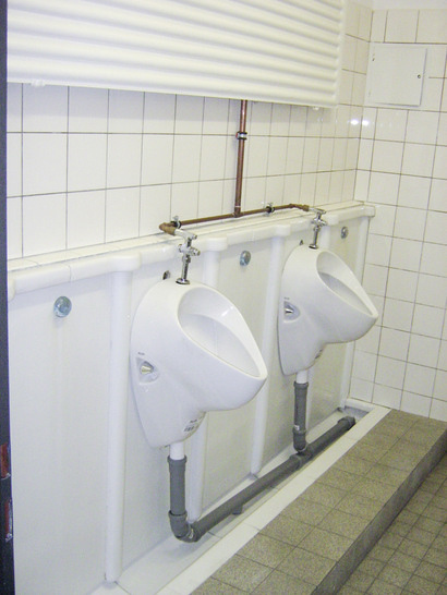 Um zusätzlichen Harndrang durch kräftiges, bauchtiefes Lachen zu erzeugen, hat man sich wohl diese Lösung ausgedacht. Und es soll am Ende keiner sagen, er hätte sich vor lauter Spaß fast in die Hose gemacht.