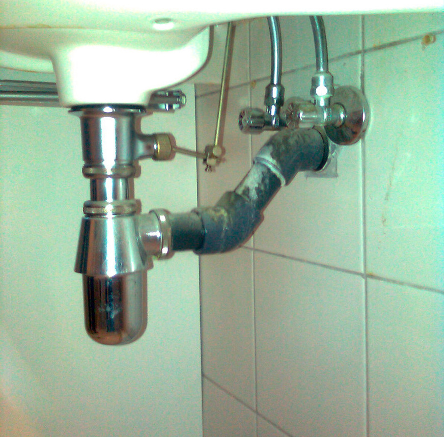 Eine ansehnliche Rohr Konstruktion, die der Installateur so erst mal hinbekommen muss. Nur mit dem Gefälle sieht es eher schlecht aus.