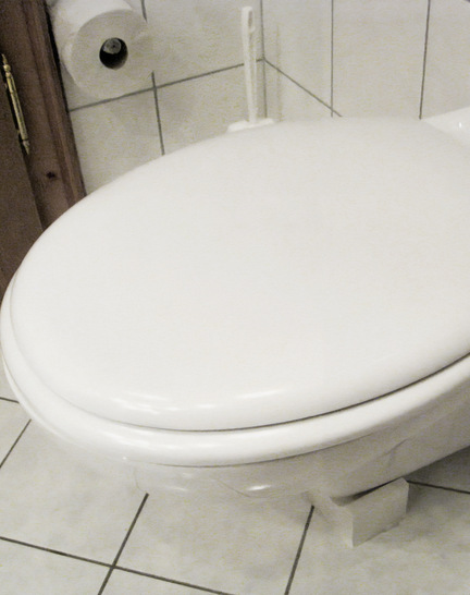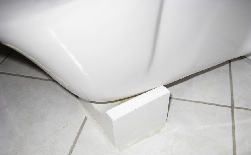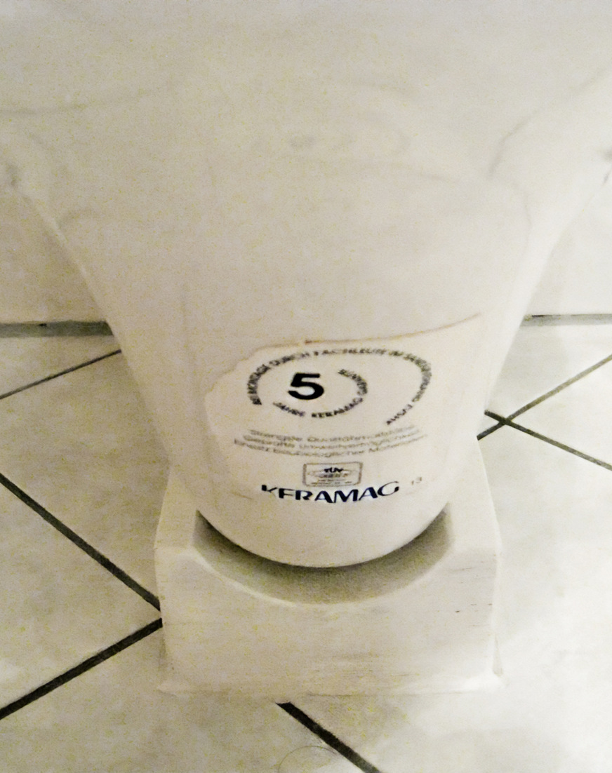 Hier traute wohl jemand nicht den Haltekräften der Wand oder des UP-Spülkastens. Jedenfalls wurde das wandhängende WC dann doch wieder zu einem Stand-WC mit der Anmutung eines wandhängenden WC´s.
