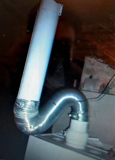 Wenn Schrauber schrauben, kommt schon mal so etwas dabei raus. Einfach einen Siphon für das Abgas bauen und schon kann der Schorni seines Amtes walten. Er hat diese Anlage nämlich sofort stillgelegt. Danke an Jörg Driesner