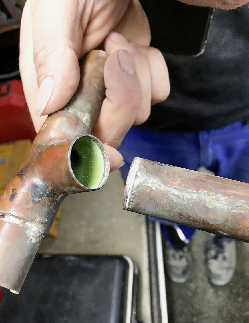 Als wir zu einer Teilreparatur der durch Lochfraß beschädigten Trinkwasserleitung gerufen wurden, zerfiel das T-Stück als man die Leitung isolieren wollte. Die Lötstelle hielt immerhin über 20 Jahre durch.