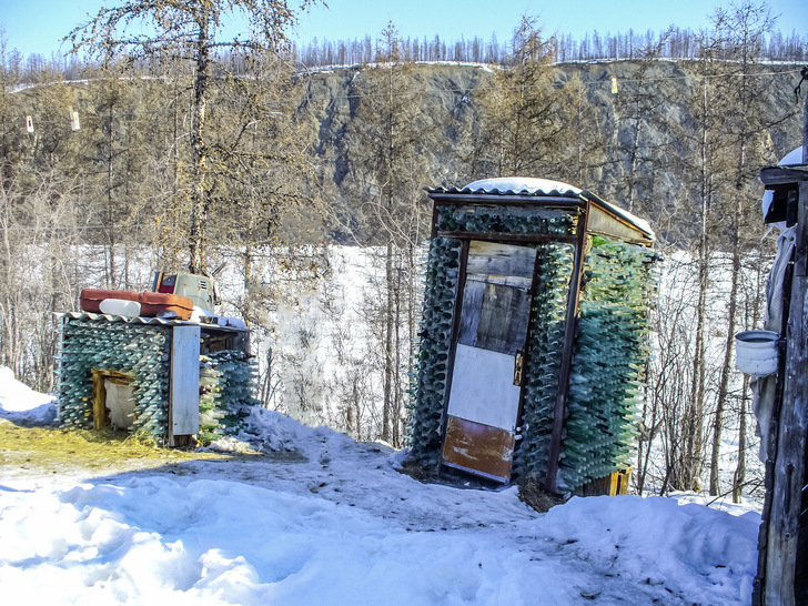 Indem Flaschen gesammelt und an den Außenwänden gestapelt werden, kann hier das Sonnenlicht den Innenraum dieser Flaschen erwärmen. So wird ,zumindest tagsüber, eine echte Wohlfühltemperatur erreicht. Zur Nachahmung empfohlen, wenn man mittels transparenter Wärmedämmung kostengünstig heizen will.