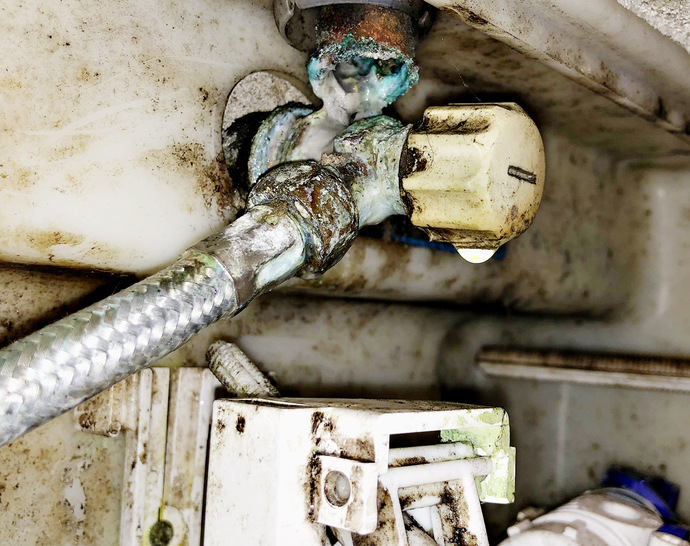 Bei der Reinigung des Wärmetauschers eines Brennwertgerätes wunderte ich mich warum es im UP-Spülkasten plätschert. Und siehe da, als die Anlage damals montiert wurde, wusste man wohl nicht wohin mit dem Kondensat und hat es in den UP-Spülkasten geleitet. Zumindest ist es sehenswert und handwerklich gut ausgeführt worden.