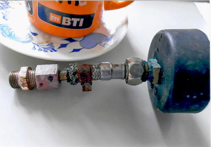 Unser Geselle, Jörg Look, hat diesen Manometeranschluss an einem Hausanschluss für Trinkwasser in einem Einfamilienhaus „geborgen“.