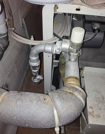 Wirklich seit Jahrzehnten werden diese ansonsten recht anspruchslosen Problemlöser tüchtig zweckentfremdet oder außer Funktion geschaltet. Hier wurde mittels S-Stück, Bogen, Verlängerung und Eckventil mal wieder der Vogel abgeschossen. Diese Anlage sollte also besser nur dann einen Überdruck ablassen wollen, wenn der Hausherr auch gerade das Eckventil öffnet. Kaum zu fassen …