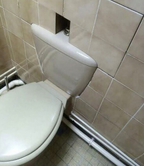 Es sollte wohl unbedingt ein UP-Spülkasten sein und dafür ist es eigentlich schon wieder gut gelungen. Nicht jeder Fliesenleger kriegt das, inklusive der Revisionsöffnung, so schön hin.