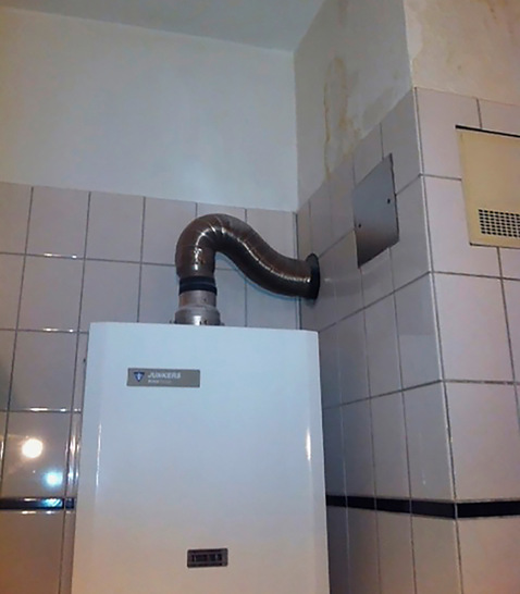 Wohl, um das Abgas nicht zu schnell in den Schornstein zu entlassen, hat hier ein sehr schlichter Geist eine Art „Schleifenbremse“ eingebaut. Passiert ist wohl bisher nix. Was für ein Glück! Aber bitte nicht nachmachen!!!