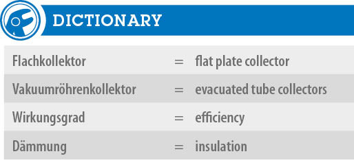 Für den Anlagenmechaniker stellt sich daher die Frage, zu welchem Kollektortyp er seinem Kunden rät. Wenn beide völlig gleichwertig wären, bräuchte man nur nach dem Preis gucken und könnte eine Entscheidung fällen. Wenn jedoch zwei Systeme mit gleichem Ziel nebeneinander existieren und dann auch noch einen unterschiedlichen Aufbau und Preis aufweisen, dann muss die parallele Existenz jeweils begründbar sein.