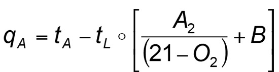 Überprüft man anhand dieser Formel den Zusammenhang von Sauerstoffgehalt im Abgas auf den Wirkungsgrad, so zeigt sich bei ansonsten gleichen Temperaturverhältnissen die bereits beschriebene Abhängigkeit. Viel Sauerstoff im Abgas deutet auf eine weniger effiziente Verbrennung hin.