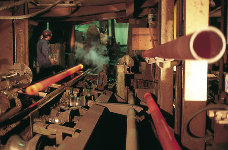 Um Gusseisen herzustellen, werden Gussbruch und Eisenschrott mit Zuschlagsstoffen, wie Koks und Kalk in einem Heißwind-Kupolofen eingeschmolzen. Dann gilt es, den flüssigen Rohstoff buchstäblich in Form zu bringen. Die Herstellung der geraden Rohrlängen geschieht heute nur noch im Schleuderguss-Verfahren. Dabei wird in eine sich schnell drehende, zylindrische Metallform, der so genannten Kokille, das flüssige Eisen gegossen. Die Fliehkraft drückt das fließende Metall dabei an die Innenwand der wassergekühlten Kokille. So bildet sich nach Erkalten des Eisens das Rohr. Ein Formkern ist bei diesem Verfahren nicht erforderlich. Das einfließende Eisen wird auf einer Waage genau dosiert, sodass ein Rohr mit einer gleichmäßigen und genau berechneten Wanddicke entsteht. Ist das Rohr in der Kokille fest geworden, wird es aus der Form herausgezogen.
