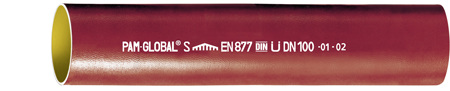 PAM-GLOBAL S-Rohre und Formstücke bestehen aus Grauguss, einer Eisen-Kohlenstoff-Legierung mit einem Gehalt an Kohlenstoff von über zwei Prozent. Dieser Kohlenstoff ist in der metallischen Grundmasse in Form von Lamellen eingelagert. Man bezeichnet diese auch als Graphitlamellen und das Material entsprechend als Gusseisen mit Lamellengraphit.