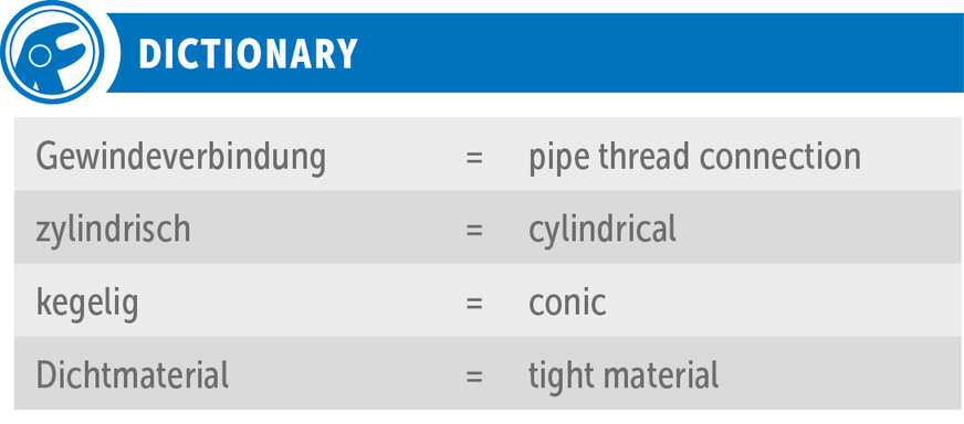 Bei den meisten der von uns verschraubten Gewindeverbindungen handelt es sich um eine von Hause aus dichte „Verkeilung“ eines kegeligen Außengewindes mit einem zylindrischen Innengewinde.